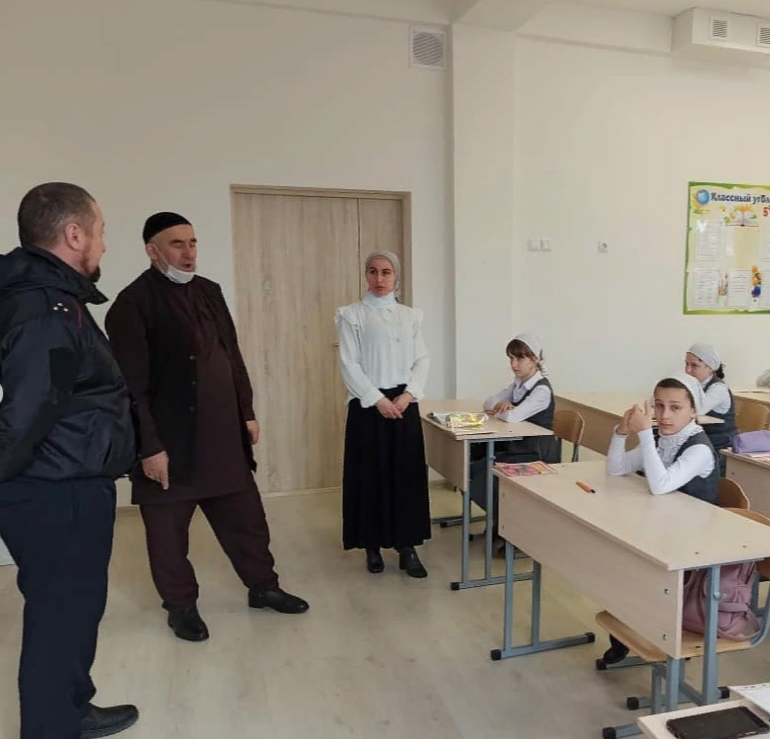Педагог-организатор Басханова Л.К. и педагог ДНВ Суриев И.А. и инспектор ГБДД России Ачхой-Мартановского района Висерханов М.Н. провели профилактическую беседу на тему: "Развлечения и безопасность зимой".