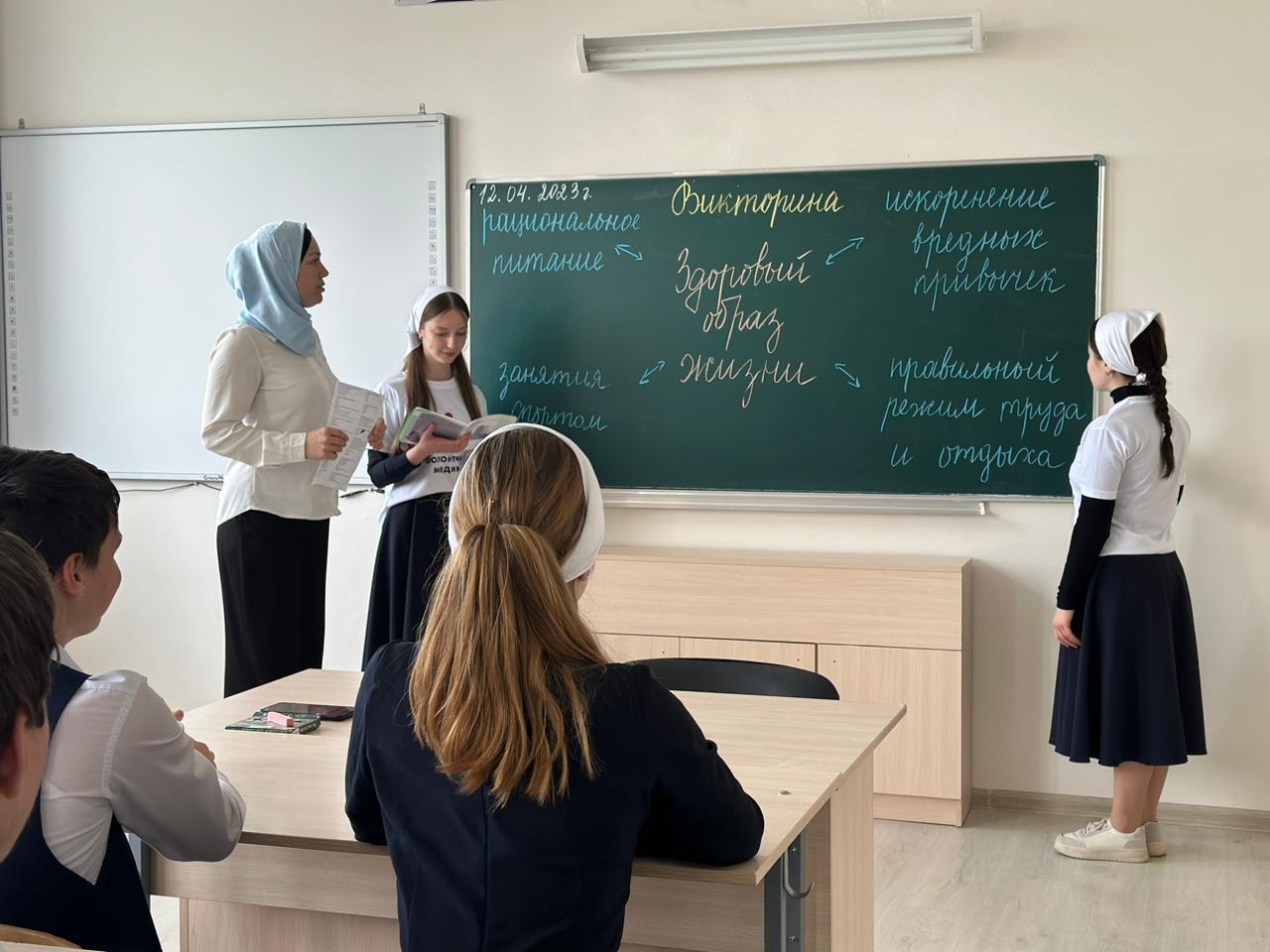 05.05.2023В рамках реализации нацпроекта «Образование» в СОШ с. Новый-Шарой под руководством педагога-организатора Курбановой Э.Х. совместно со школьным отрядом «Волонтеры-медики» было проведено мероприятие на тему: «Здоровый образ жизни» с участием обучающихся 9а класса. Цель мероприятия: формирование мотивации к здоровому образу жизни, сознательному отказу от вредных привычек и зависимостей, способствующих развитию различных соматических и психических заболеваний; систематизация и обобщение знаний школьников о здоровом образе жизни.