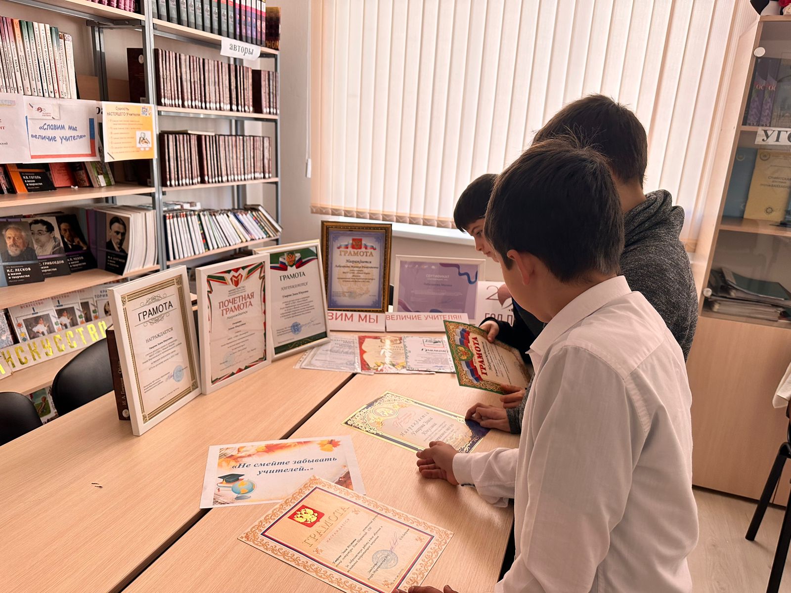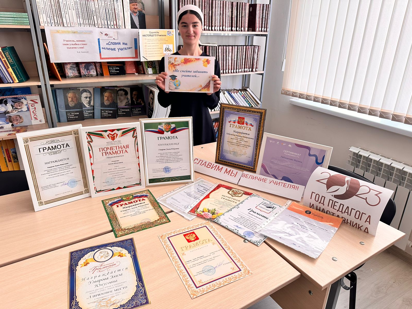 21.12.2023В рамках Года Педагога и Наставника, с целью популяризации профессии учителя среди учащихся и родительской общественности, а также для развития познавательной и творческой активности обучающихся в МБОУ «СОШ с. Новый-Шарой» были проведены следующие мероприятия: 19 декабря 2023 года классный руководитель 7 класса Лабазанова М.Р. провела внеклассное мероприятие «Учитель пред именем твоим…», 20 декабря 2023 года педагог-библиотекарь Батаева С.С. провела тематическую выставку «Славим мы величие учителя!». Мероприятия были посвящены закрытию Года педагога и наставника.