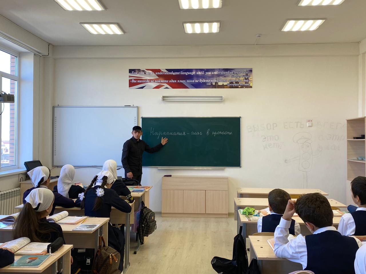 11.11.2024В МБОУ «СОШ с.Новый-Шарой» духовником школы Дадаевым И.Н. проведена профилактическая беседа с обучающимися 9-11 классов по теме «Наркомания - шаг в пропасть».