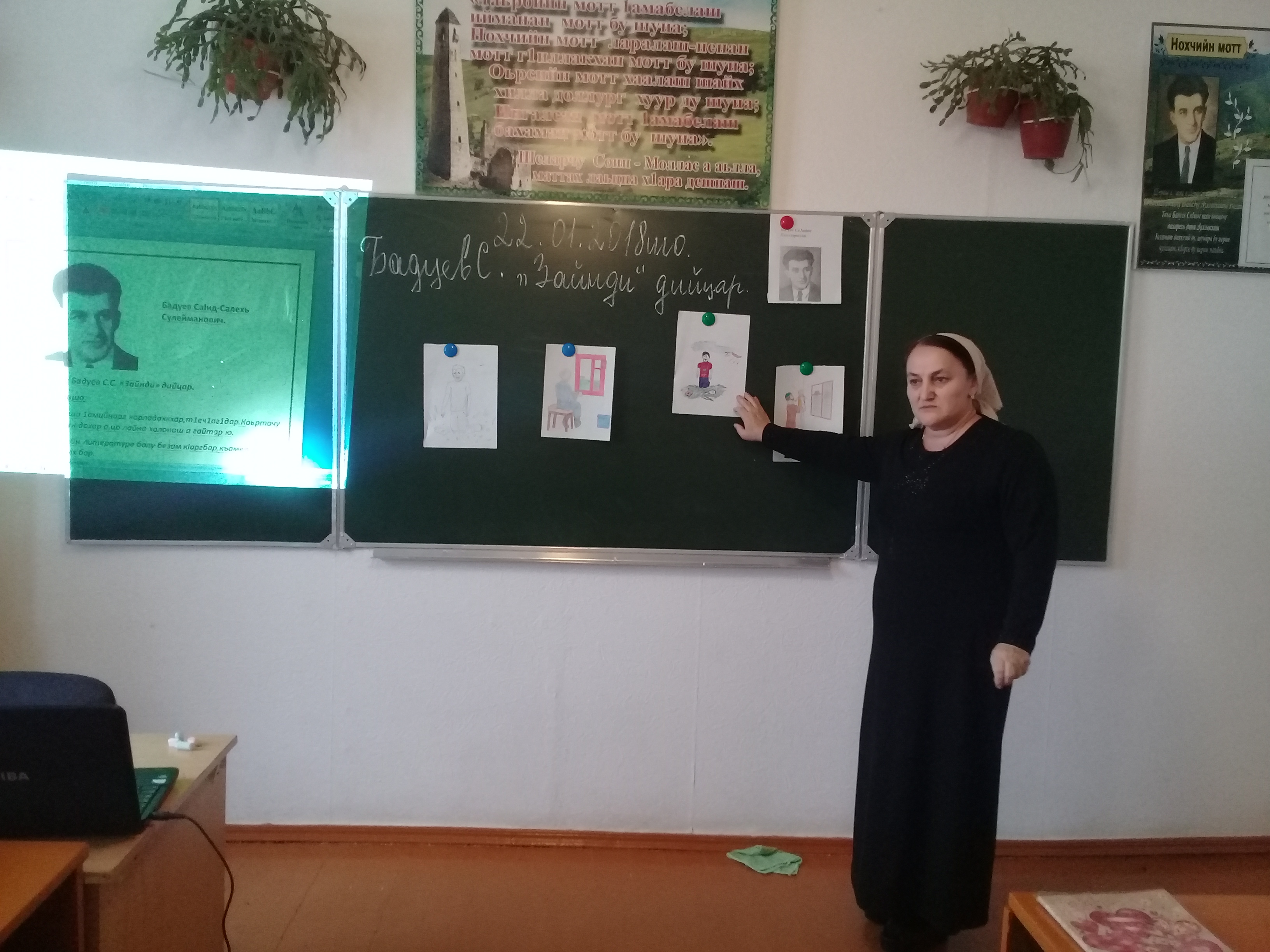 22.01.20185-чу кл. Бадуев С.С. "Зейнди" дийцар, нохчийн литературан йиллина урок д1аяьхьира Дадаева З.М.. Коьрта 1алашо яра: турпалхочун дахар а, цо лайна халонаш а дешархошна йовзитар, литературе болу безам к1арг бар. Дешархоша жигара дакъалецира, турпалхочун васт естира.