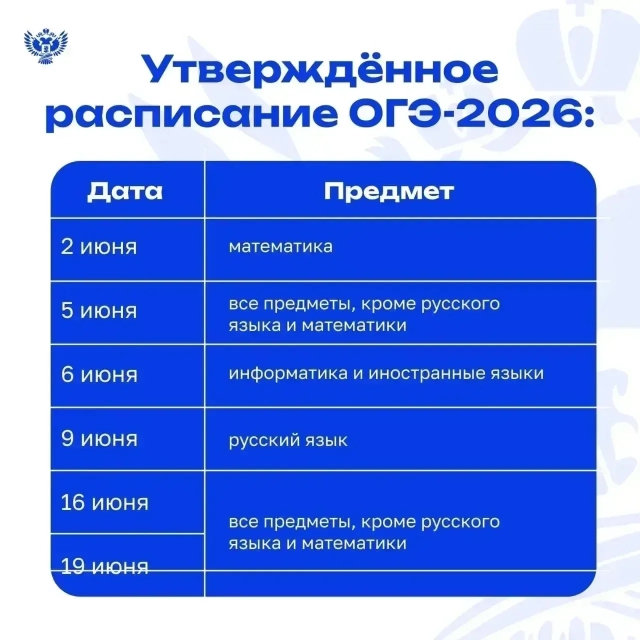 08.12.2025Утверждены единое расписание и период проведения ОГЭ и ЕГЭ в 2026 году