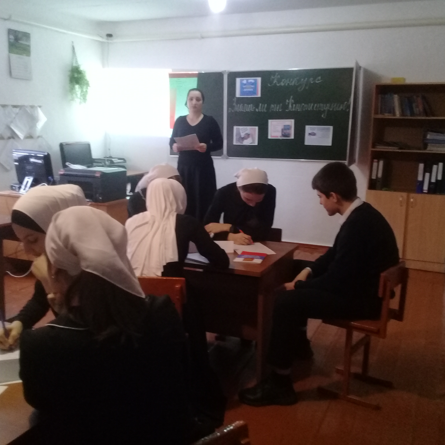 Связи с праздником в МБОУ «СОШ с. Новый-Шарой» 7 декабря проведен конкурс на тему: «Знаешь ли ты Конституцию!» среди обучающихся 10-11 классов. Учащиеся 10 класса заняли первое место в конкурсе.